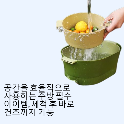 이중 구조로 과일과 채소를 신선하게 보관, 물빠짐과 통풍이 우수, 공간 절약형 디자인, 주방 정리에 적합, 내구성 좋은 소재 사용